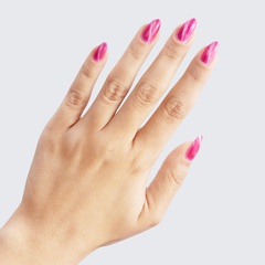 Tens across the board for this ruby pink polish and its shimmering pink flare.